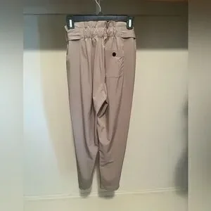 These tan trousers from Athleta offer a relaxed fit with a stylish tie-waist detail, perfect for a polished yet casual look. The lightweight fabric and slightly tapered leg make them ideal for versatile styling in any setting.