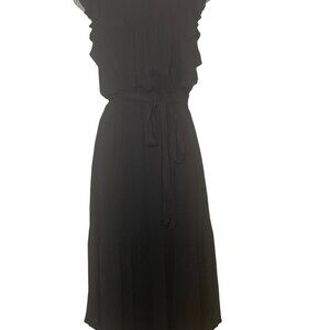 New with tags Gentle Fawn Mariella Dress in classic black. Made from soft pebbled crepe rayon that drapes beautifully. Features elegant pintuck details, ruffled sleeves, a tiered hem, and a removable belt with an elastic waist for a flattering silhouette. Size Small.