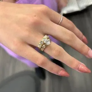 This gorgeous bridal set features a stunning engagement ring and matching wedding band in timeless 14K yellow gold. The center diamond is a GIA-certified oval brilliant cut, weighing 0.96 carats, with a D color grade (completely colorless) and SI2 clarity (slightly included but eye-clean). The set offers an elegant, vintage-inspired design perfect for any bride-to-be.