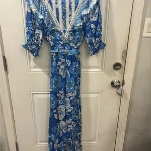 FARM Rio Full of Flowers Blue Floral Jumpsuit Size M