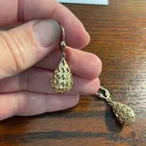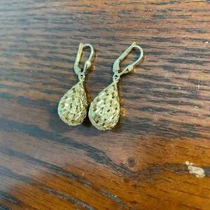 14k Yellow Gold Tear Drop Filagree Drop Earrings
