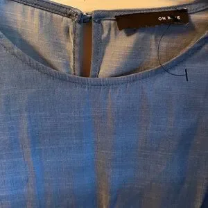 Stylish blue dress with black patterned details. Perfect for any occasion.