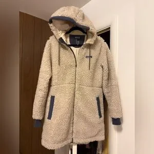 Eco-friendly Patagonia jacket, lightly worn (less than a dozen times). Made from recycled polyester, this jacket is soft and cozy while still giving a tailored cut. I love this winter jacket, but it’s too small for me! Comes from a smoke-free home, in great condition with one small blemish on the interior lining.