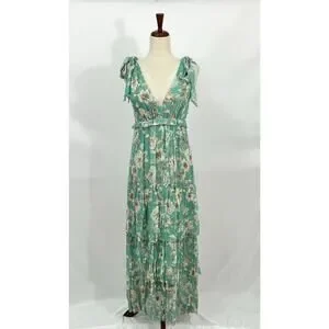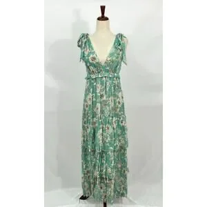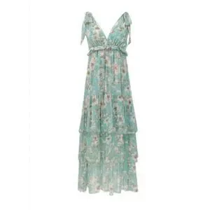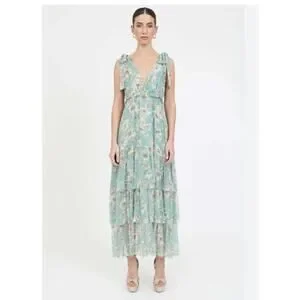 The Alexa Dress is inspired by our best-selling Alix Dress. This three-tier ankle-length dress fashioned in Christy Lynn's signature silk crinkle chiffon features a plunging v-neck and shoulder bow details. Composition: Silk Crinkle Chiffon Care: Dry clean only Imported.