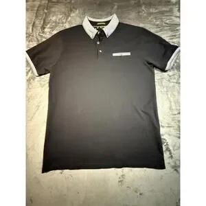 Denim & Flower Polo Shirt Mens Medium Black Pocket Preppy