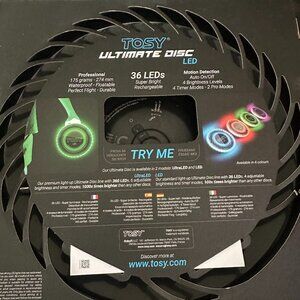 Light up your game with the TOSY Ultimate Disc, featuring 36 ultra-bright LEDs for unbeatable visibility—even at night. Perfect for Ultimate Frisbee, casual play, or outdoor fun after dark.