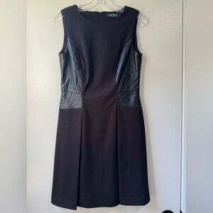 Lauren Ralph Lauren Faux Leather Trim Sheath Sleeveless Black Dress Sz