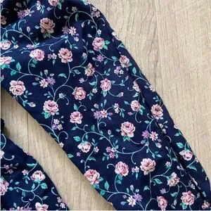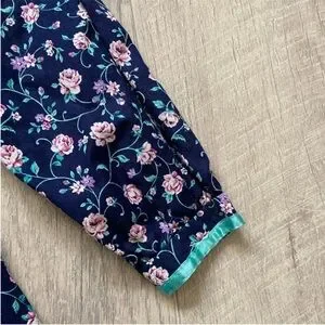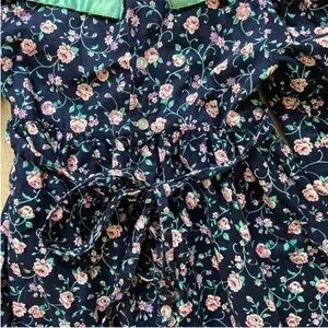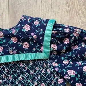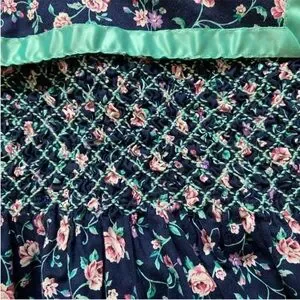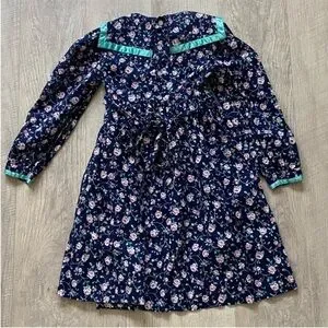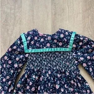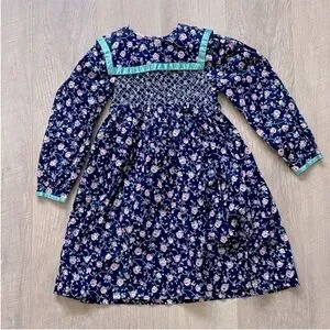 Vintage Polly Flinders Navy Blue Floral Hand Smocked Dress Sz 6