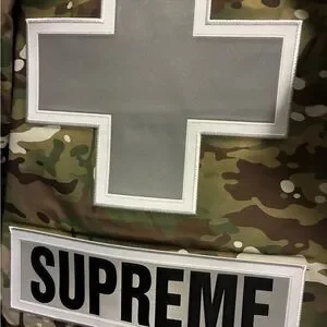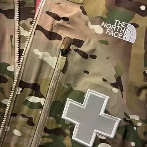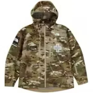 This jacket features a water resistant three layer poly-shell with Supreme and The North Face logos on the back, front, and sleeves. 3M patches can be found on the front, back, and sleeves of the jacket.