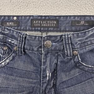 Affliction Blake Jeans 33x32 Relaxed Straight Distressed Renegade Embroidered
