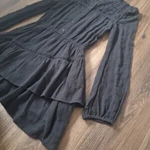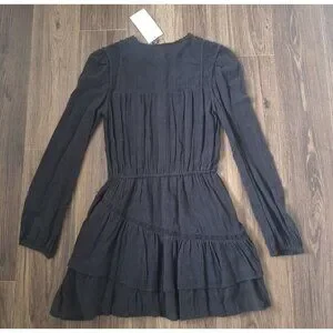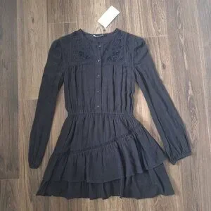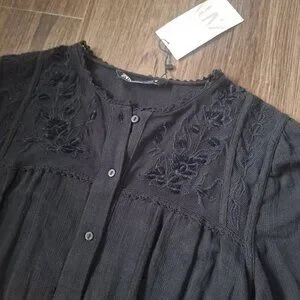 NWT Zara Black Tiered Embroidered Mini Dress Lined 100% Cotton