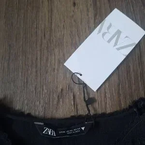 NWT Zara Black Tiered Embroidered Mini Dress Lined. 100% Cotton.