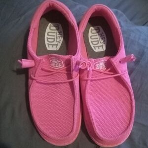 Stylish pink shoes from Hey Dude. Perfect for casual wear. Hardly worn, and in near perfect condition still.