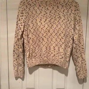 Cozy crew neck sweater. Cream base with purple speckles. Perfect for casual wear.