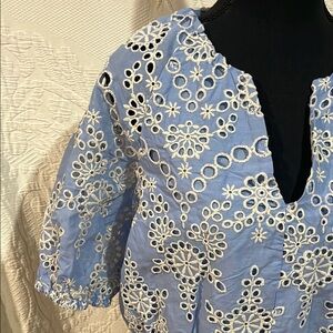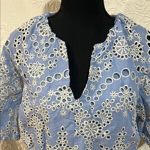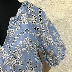 NVLT Blue and White Eyelet Women's Top, size small, NWT