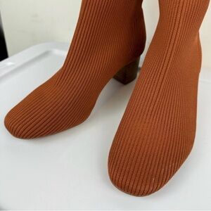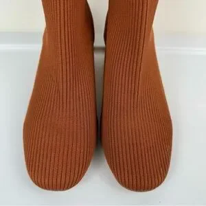 Joie Revolve Neely Sock Ribbed Ankle Booties Sz 7.5 Chestnut Brown Block Heel