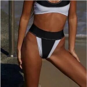 Free People FP Beach Dylan High Waist Colorblock Bikini Bottoms size XS. Has some hanger marks on the band but I don’t think they’ll be a big deal at all. Otherwise new without tags (still have hygienic liner) and from a smoke-free home.