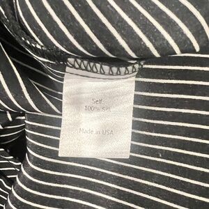 La Ligne Black and White Stripe Smocked Silk Midi Dress Tie Shoulder Size Small