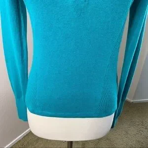 Eddie Bauer NWT Half Zip Knit Pullover Color is Teal Cool Mint Soft Breathable Fits Close To The Body With Flattering Seam Details
