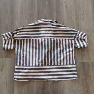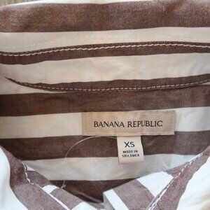BANANA REPUBLIC striped shirt top brown white stripe XS button summer office
