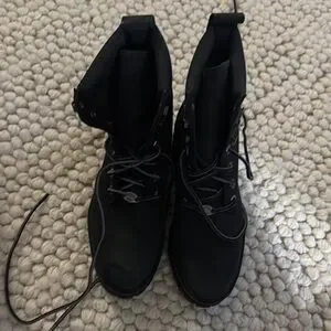 These Timberland combat boots in black are designed for durability and style. Crafted with a rugged build, they offer excellent support and traction for any adventure. Perfect for those who appreciate both functionality and a classic look.