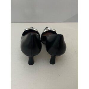 Anthropologie Maeve Black Leather Heart Kitten Heel Pumps Size 38