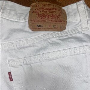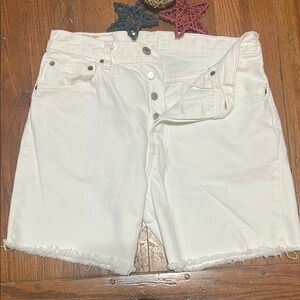 LEVI’S 501 VINTAGE Crisp white denim cutoffs SHORTS. Features raw hem, button-fly, and classic pocket design. Approximate 29” waist.