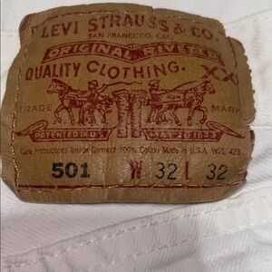 NOTE: Levi’s 501 leather tag on back waistband says waist 32, but these are an older vintage style so the actual size is pictured & measures approximately 14.5” across, which is approximately 29” waist.