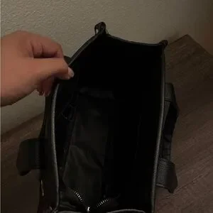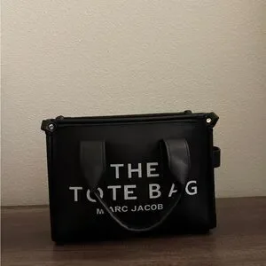 Copy it’s not authentic The Marc Jacobs Black Tote Bag features a minimalist design with a structured rectangular shape and short double leather handles. Its durable construction and detachable shoulder strap offer versatility for everyday use.