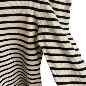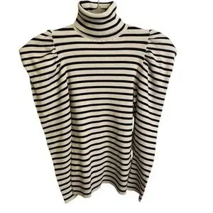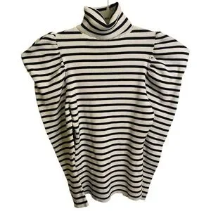 A.L.C. Baker Puffed Shoulders Black and White Striped Turtleneck Sweater