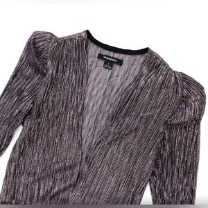 This stunning cocktail dress by Sabina Musayev features a pleated, embellished design in a captivating purple and silver hue. The long bishop sleeves and crew neck add a touch of elegance, while the sheath silhouette ensures a flattering fit for a night out. Books offer you the options to wear the dress both way with the V towards the front or the back. Extra reinforcements have been applied to the hooks (see the photos).