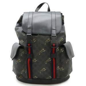GUCCI Soft GG Supreme Sherry Line Backpack Tiger PVC Leather Black Grey 495563