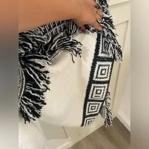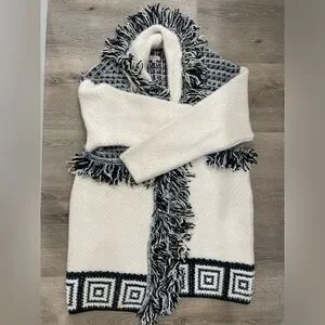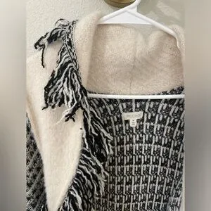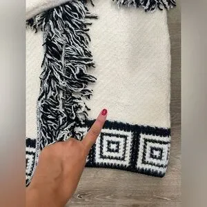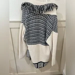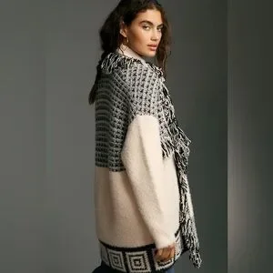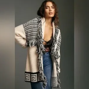 Anthropologie Pilcro Fringe Cardigan Sweater Size Cream Black Oversized