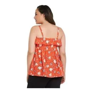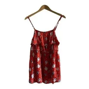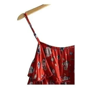 TORRID Red and White Jessica Floral Ruffle Baby Doll Tank Top Size 0 Large 12