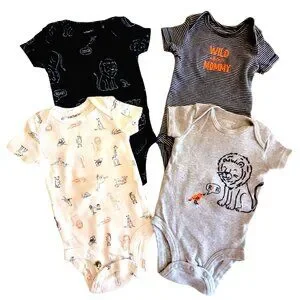 Short-sleeved, pullover, snap crotch, various patterns and accents