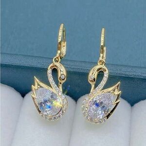 These elegant gold swan earrings are perfect for adding a touch of sophistication to any outfit. The shimmering gold finish and intricate design make them a standout piece in your jewelry collection.