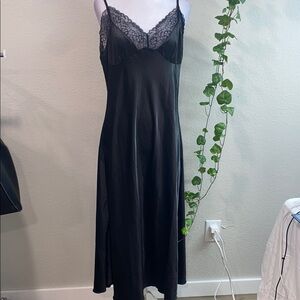 Elegant Black Lace Nightgown, Long Women sleepwear Dress,Satin Dress