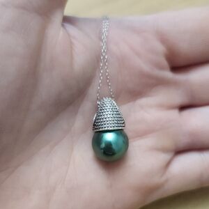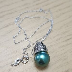 Elegant 925 sterling silver necklace and earring set featuring teal pearls. Perfect for adding a touch of sophistication.