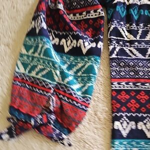 Vibrant strapless dress with intricate patterns. Features a mix of colors for a bold look. Perfect for casual outings.