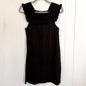 Madewell Sundream Fringe Dress Crochet Collar Shift Dress Black 100% Cotton- Square