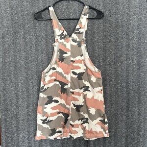 Zara kids, pink and tan gray camo camouflage overalls dress 13-14