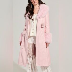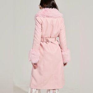NWT AKIRA light Pink Fur-Trimmed belted faux leather trench Coat size M