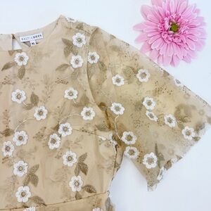 NWT Baltic Born Arabella Embroidered Tulle Maxi Dress: Gold White Floral Event Evening.