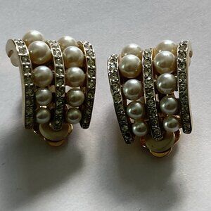 VTG Carolee Earrings Rhinestone Clip Statement Wedding Simulated Diamond Pearls
