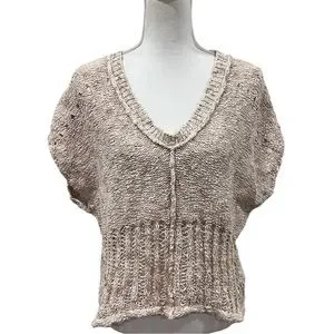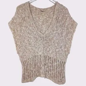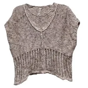 Free People Rare Knit Marled Oatmeal Short Sleeve Sweater