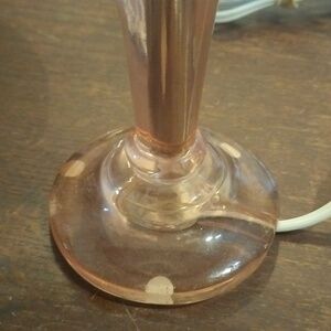 Illuminate your space with this elegant pink lucite table lamp, featuring intricate bead detailing on the original shade. Perfect for adding a touch of girly sophistication to any room. will need a small low watt bulb.