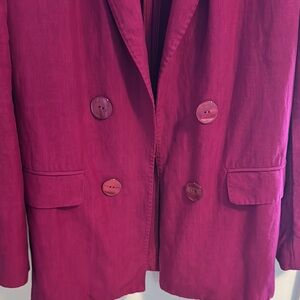 Chic magenta blazer with a double-breasted design. Ideal for versatile styling.USA size 8. Euro size 40
