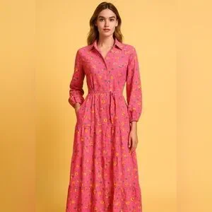 ANN MASHBURN Orange and Pink Pleated Tiered Sundress