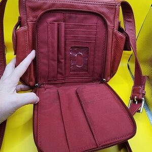 Fossil Red Leather Purse Crossbody Bag 9x7"