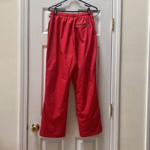 Bauer Team 37.5 Technology Red Warm Up Lined Flex Pants, Size S. They have an elastic waistband with wide drawstring, 2 side pockets, a zippered back pocket, and straight leg fit with 8" zippers down the sides to the ankles. The water resistant fabric is made of 100% polyester (both the red shell and the gray lining). Best of all they feature Bauer's 37.5 Technology. According to Bauer, "apparel with 37.5 technology dries up to six times faster than competitive products." These pants are perfect for travel, casual, workwear, sports, and other activewear. With a solid red color and Bauer logo, these pants also have pockets for convenience. There are some black marks on the pants (see last pics for examples) - the price reflects this.
